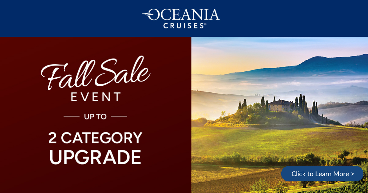 Celebrate the season with voyages designed for discovery, whether it’s tasting your way through Europe’s autumn flavors or embracing the beauty of faraway horizons, Oceania Cruises invites you to experience travel at its finest.